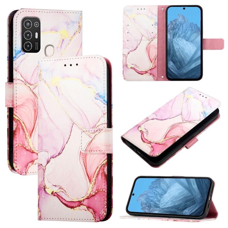 For ZTE Blade A52 PT003 Marble Pattern Flip Leather Phone Case(Rose Gold)