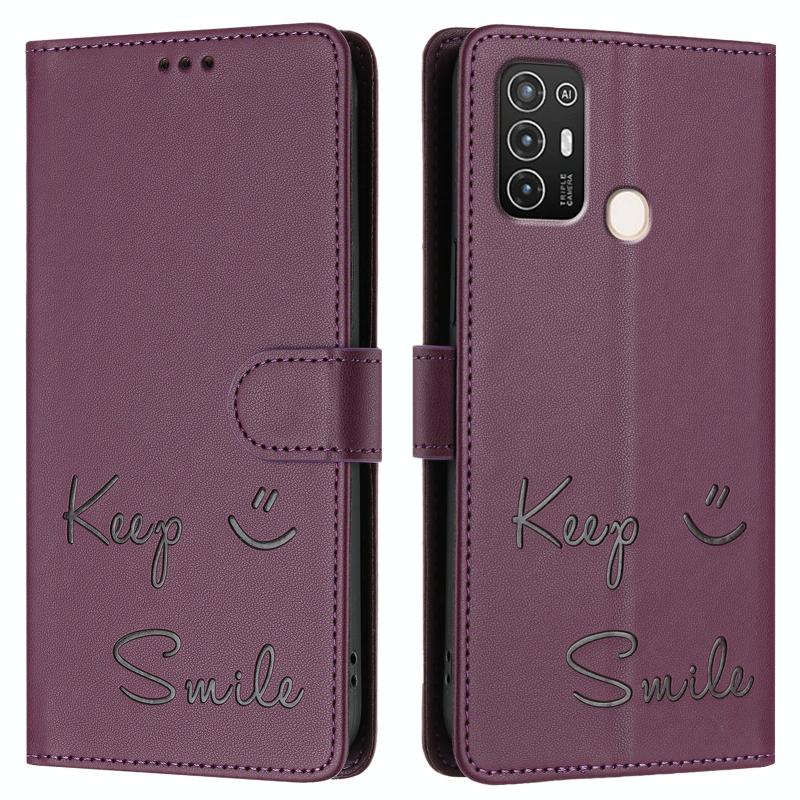 For ZTE Blade A52 Smile Embossing RFID Leather Phone Case(Violet)