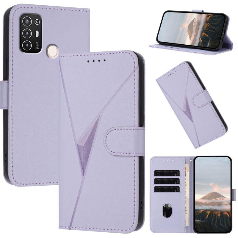 For ZTE Blade A52 Triangle Pattern Buckle Clasp Leather Phone Case(Light Purple)