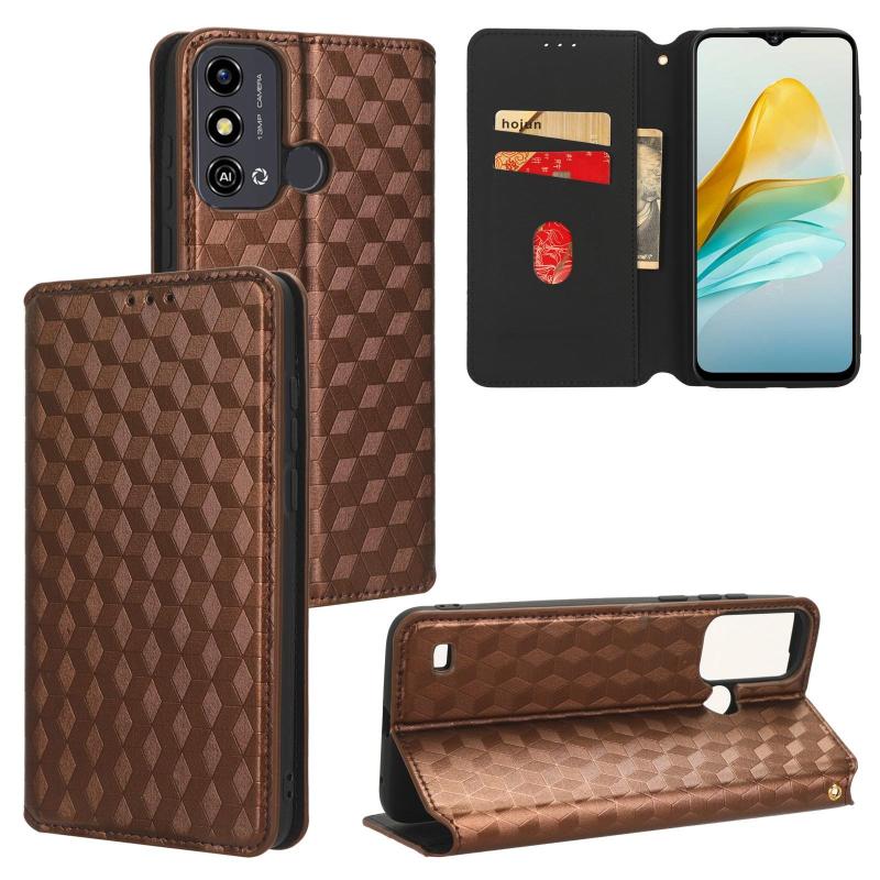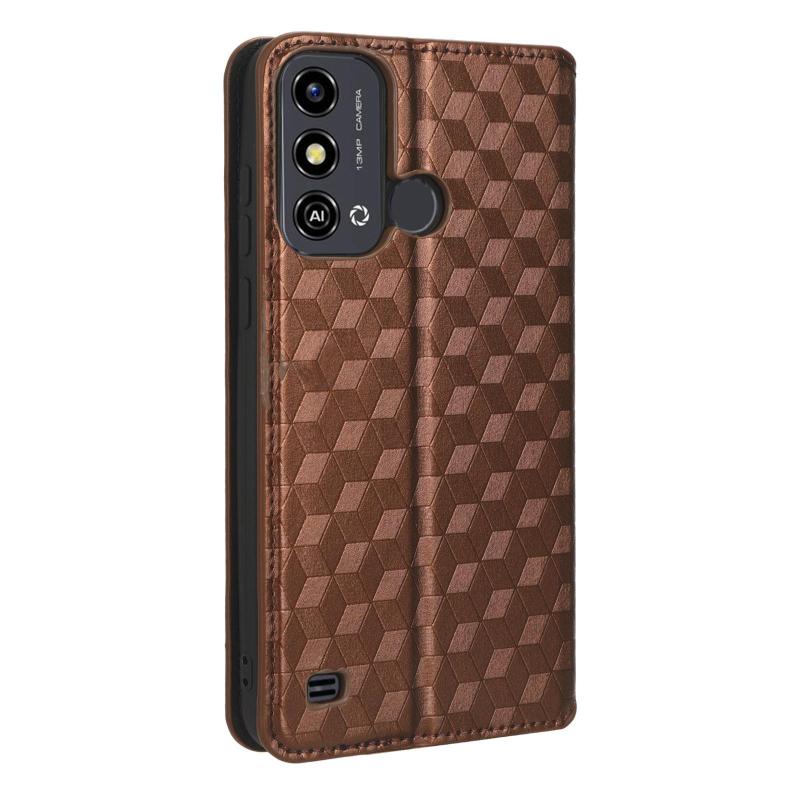 For ZTE Blade A53 Cubic Grid Texture Flip Leather Phone Case(Brown)