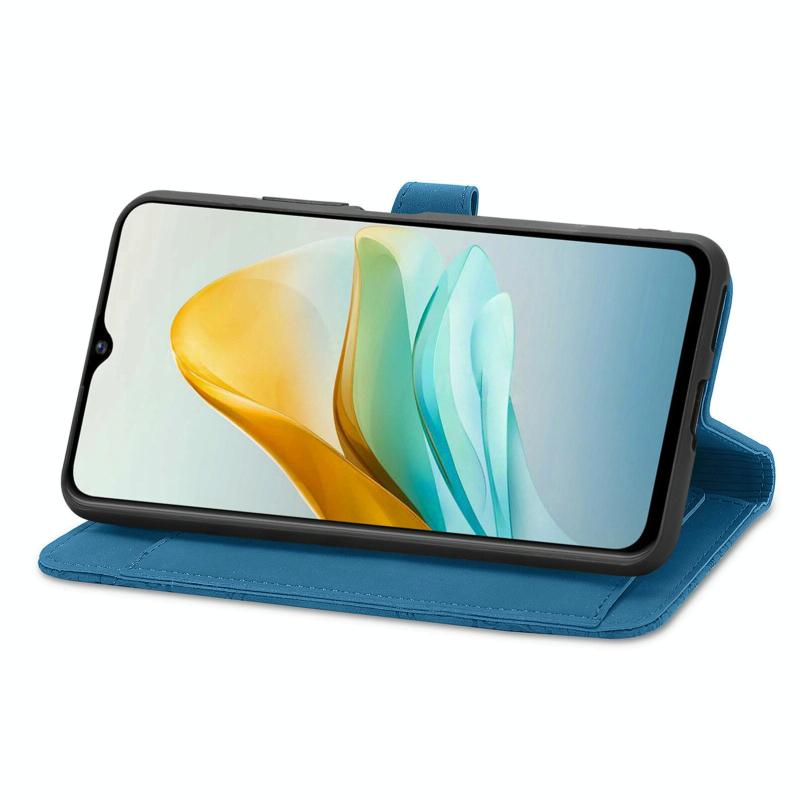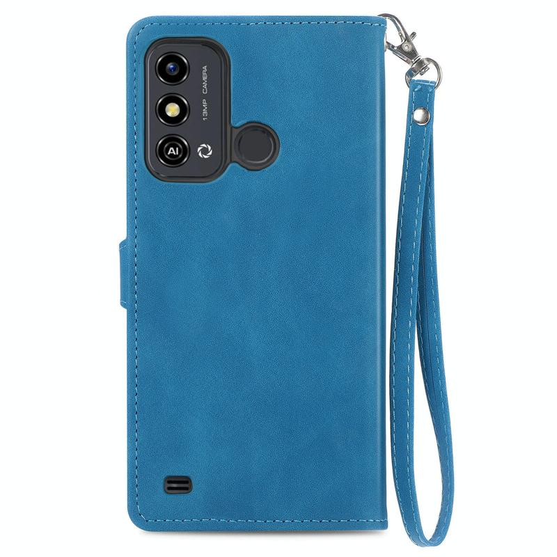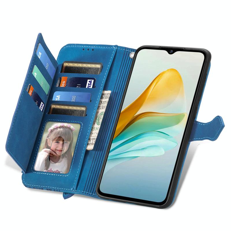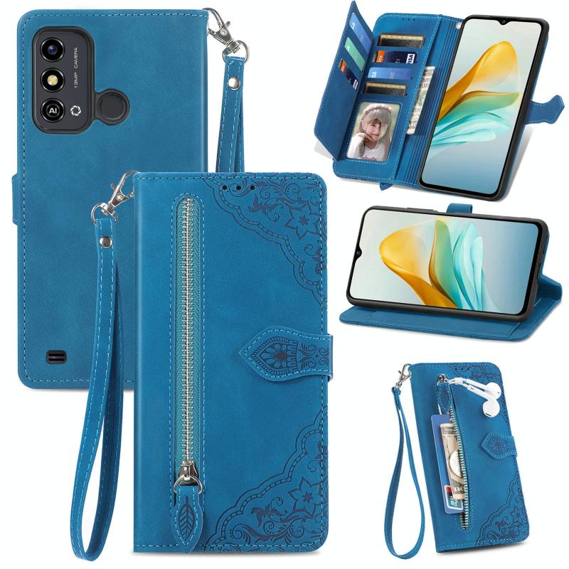 For ZTE Blade A53 Embossed Flower Zipper Leather Phone Case(Blue)