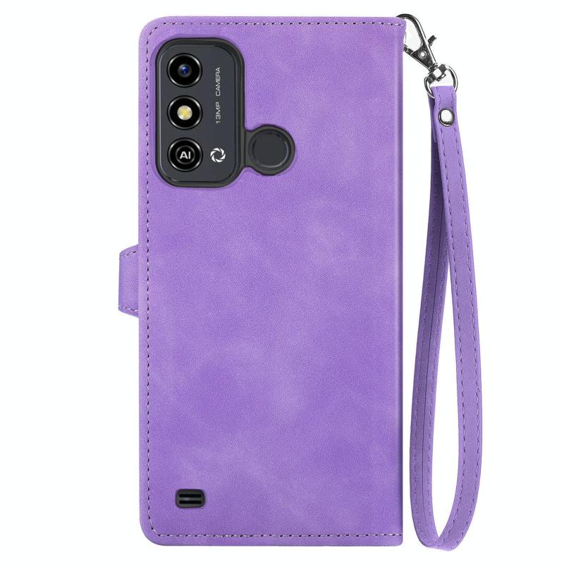 For ZTE Blade A53 Embossed Flower Zipper Leather Phone Case(Purple)
