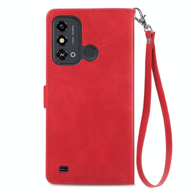 For ZTE Blade A53 Embossed Flower Zipper Leather Phone Case(Red)