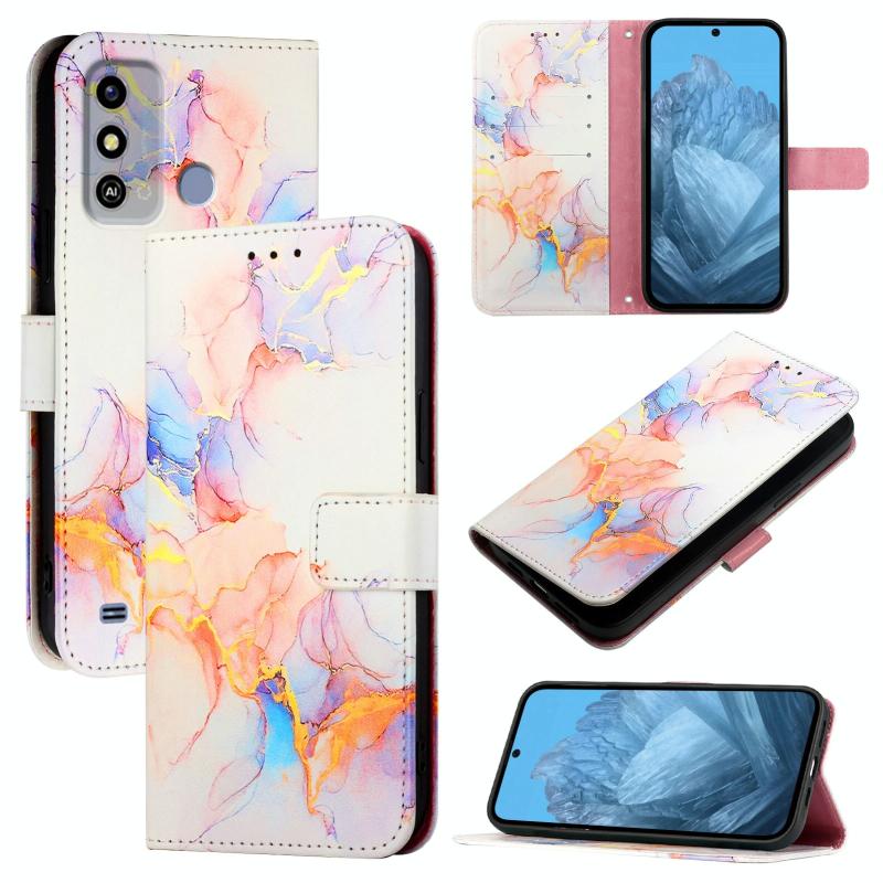 For ZTE Blade A53 PT003 Marble Pattern Flip Leather Phone Case(Galaxy Marble White)