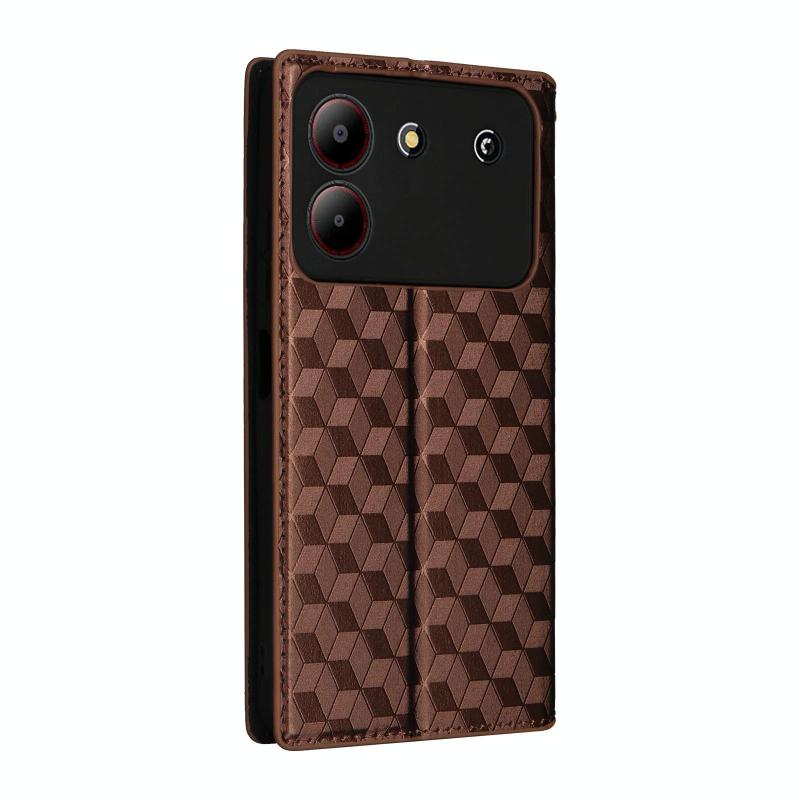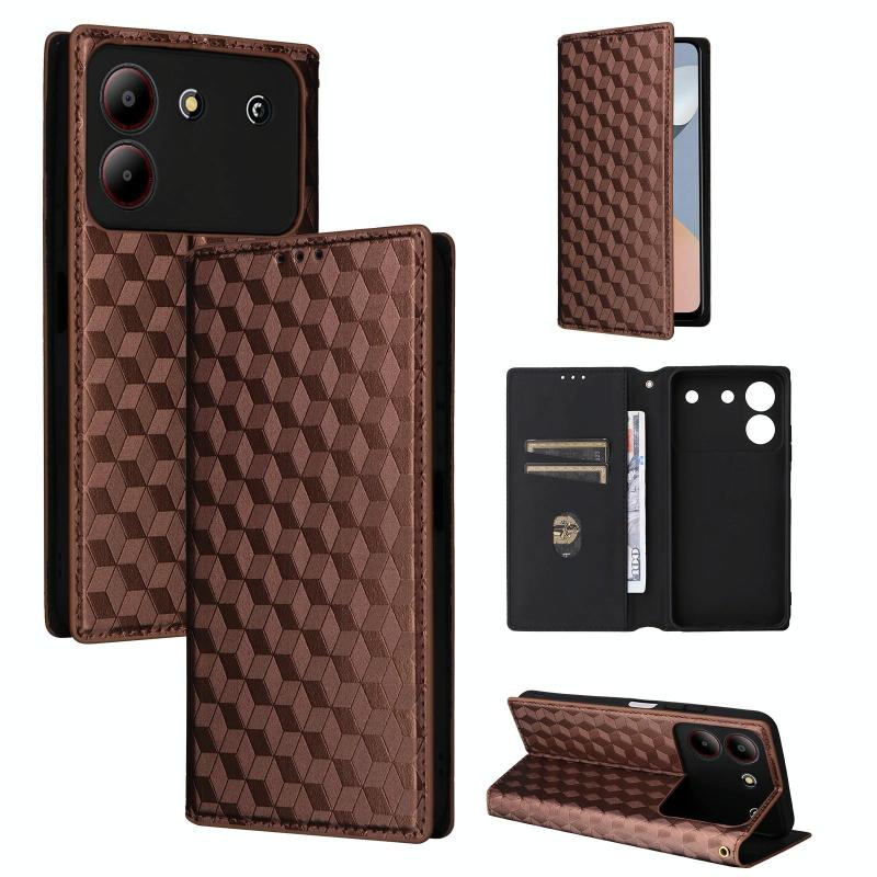 For ZTE Blade A54 Cubic Grid Texture Flip Leather Phone Case(Brown)