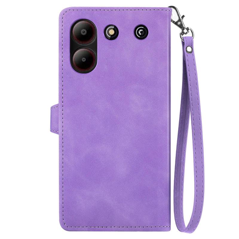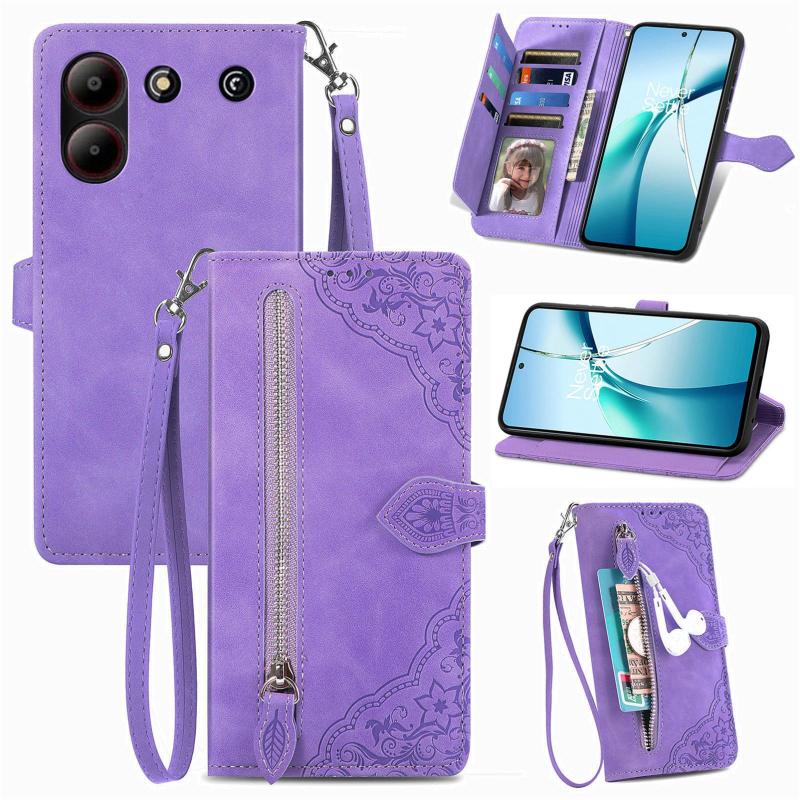 For ZTE Blade A54 Embossed Flower Zipper Leather Phone Case(Purple)
