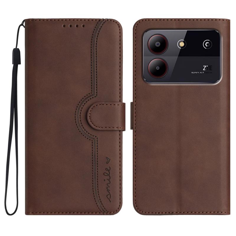 For ZTE Blade A54 Heart Pattern Skin Feel Leather Phone Case(Brown)