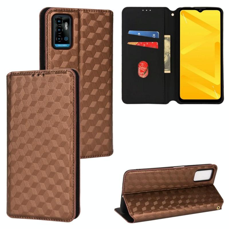 For ZTE Blade A71 / Optus X Swift 5G Cubic Grid Texture Flip Leather Phone Case(Brown)