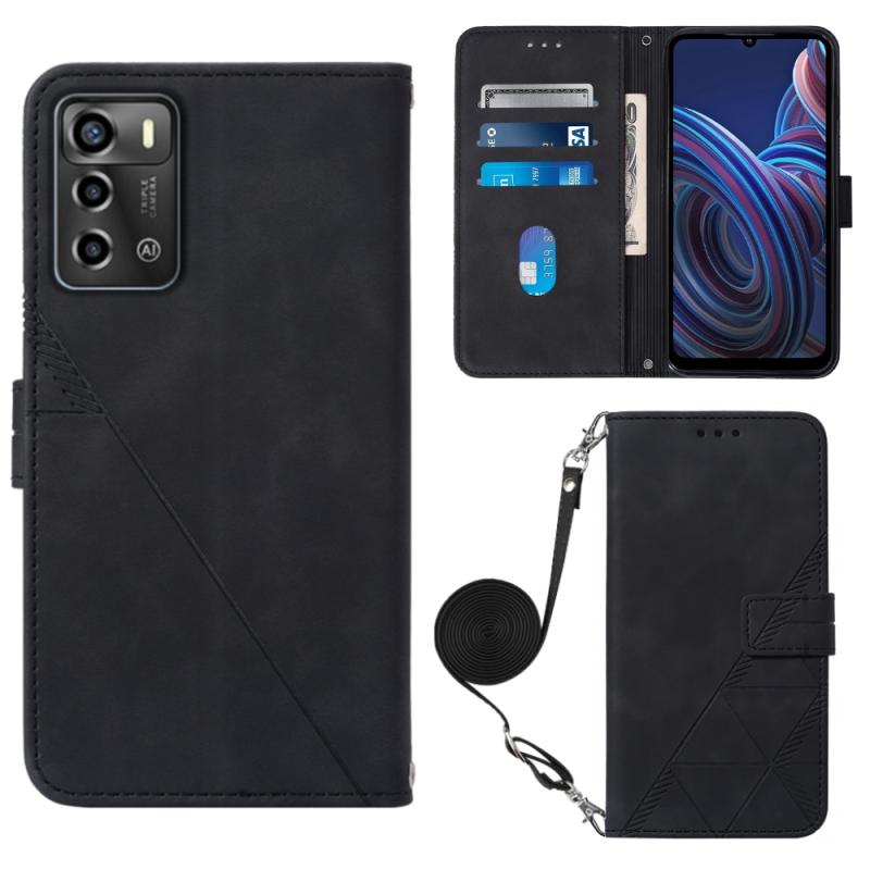 For ZTE Blade A72 Crossbody 3D Embossed Flip Leather Phone Case(Black)