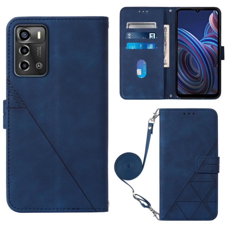 For ZTE Blade A72 Crossbody 3D Embossed Flip Leather Phone Case(Blue)