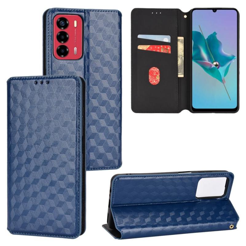 For ZTE Blade A72 / V40 Vita Cubic Grid Texture Flip Leather Phone Case(Blue)