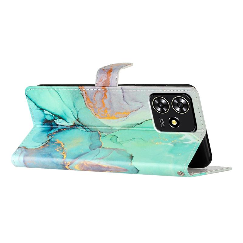 For ZTE Blade A73 4G Colored Drawing Leather Phone Case(Green Marble)