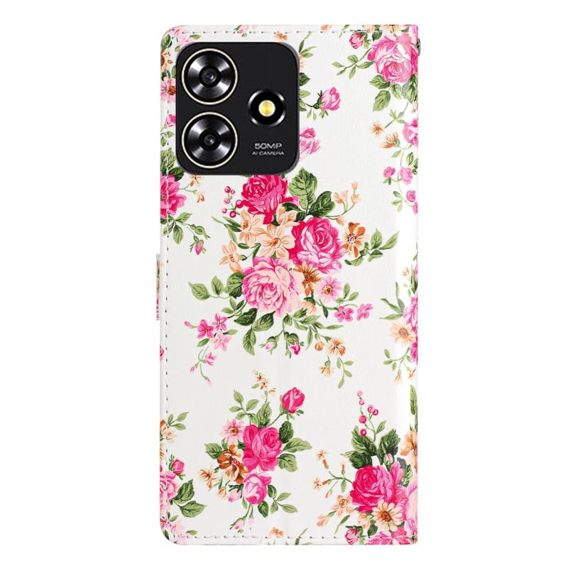 For ZTE Blade A73 4G Colored Drawing Leather Phone Case(Peonies)