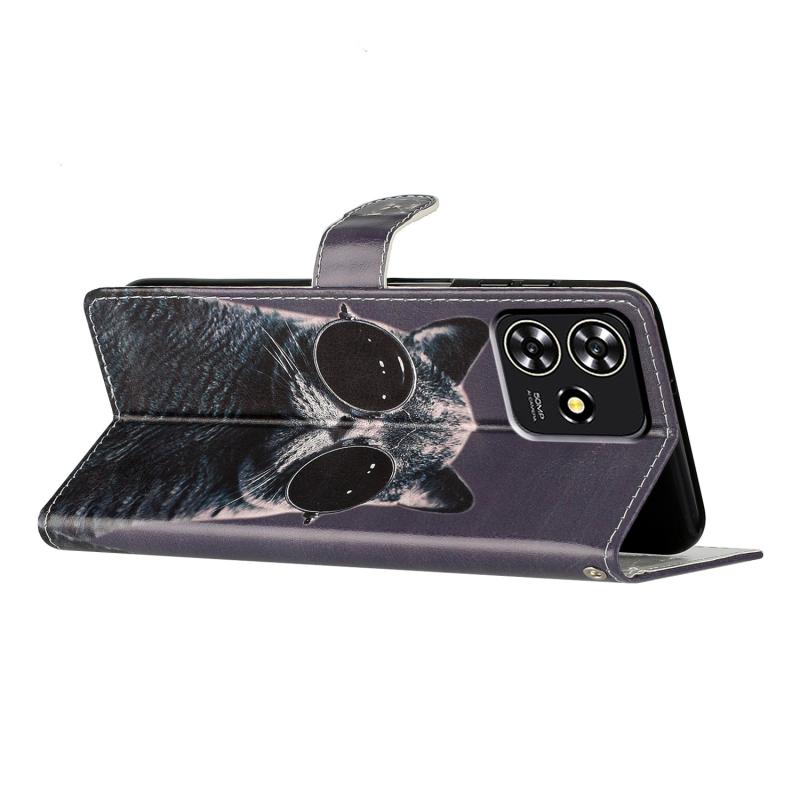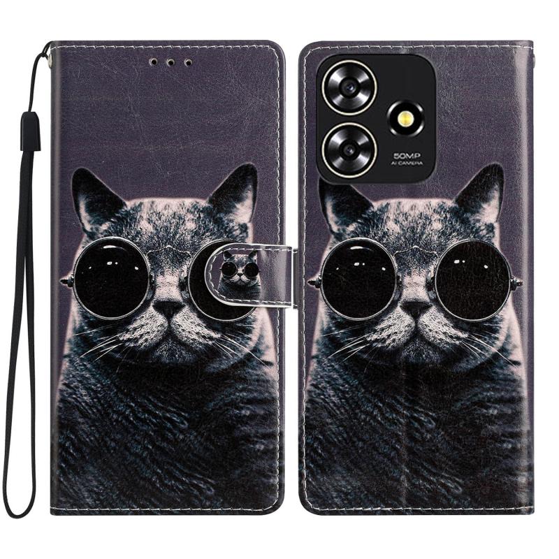 For ZTE Blade A73 4G Colored Drawing Leather Phone Case(Sunglasses Cat)