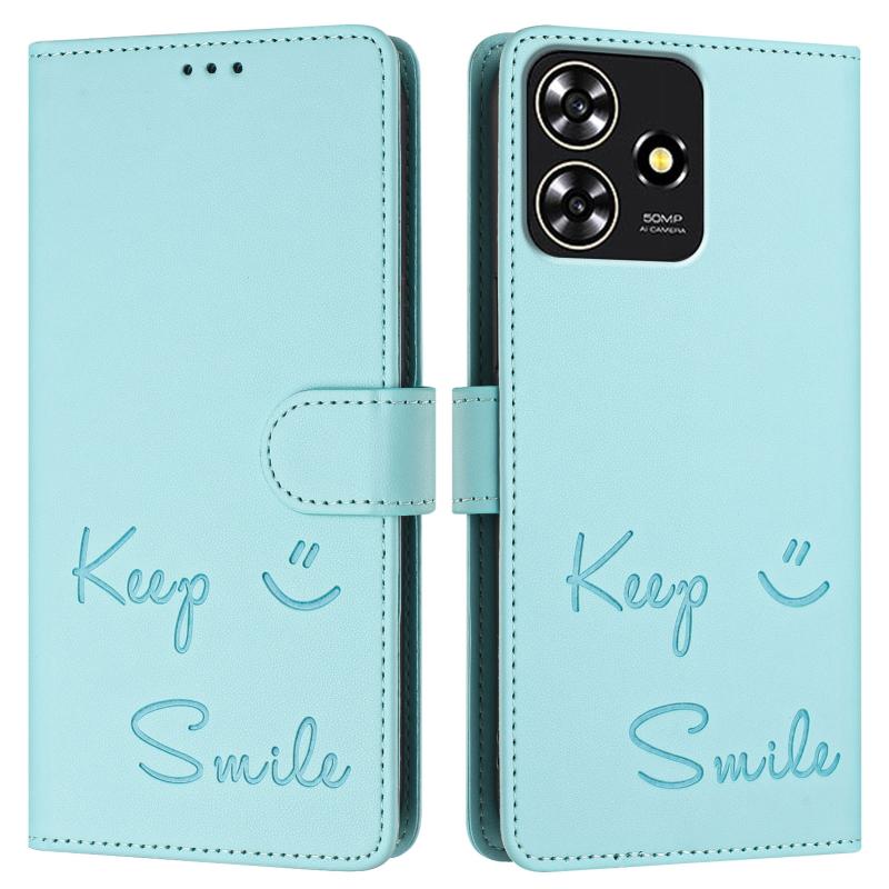 For ZTE Blade A73 4G Smile Embossing RFID Leather Phone Case(Mint Green)