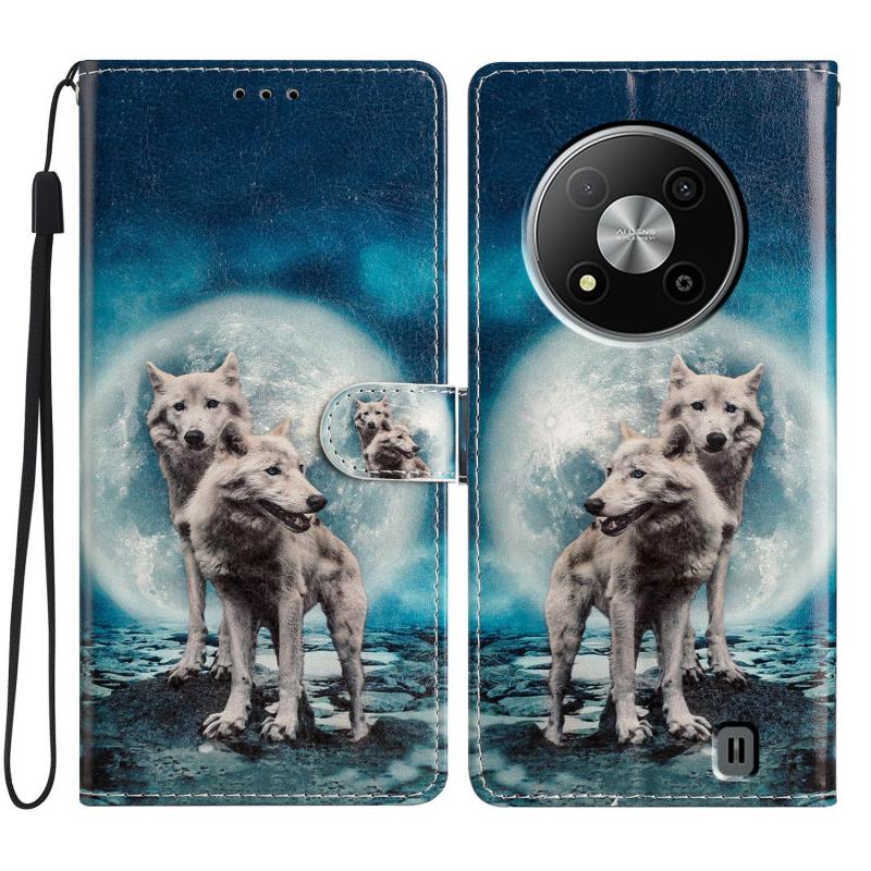 For ZTE Blade A73 5G Colored Drawing Leather Phone Case(Twin Wolves)