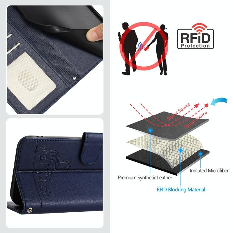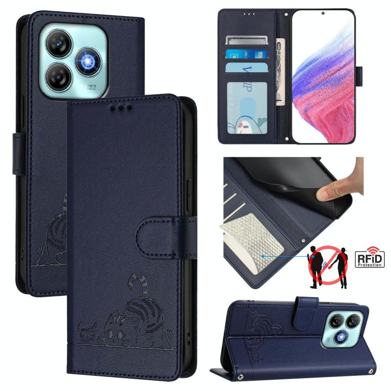 For ZTE Blade A75 4G Cat Rat Embossed Pattern RFID Leather Phone Case with Lanyard(Blue)
