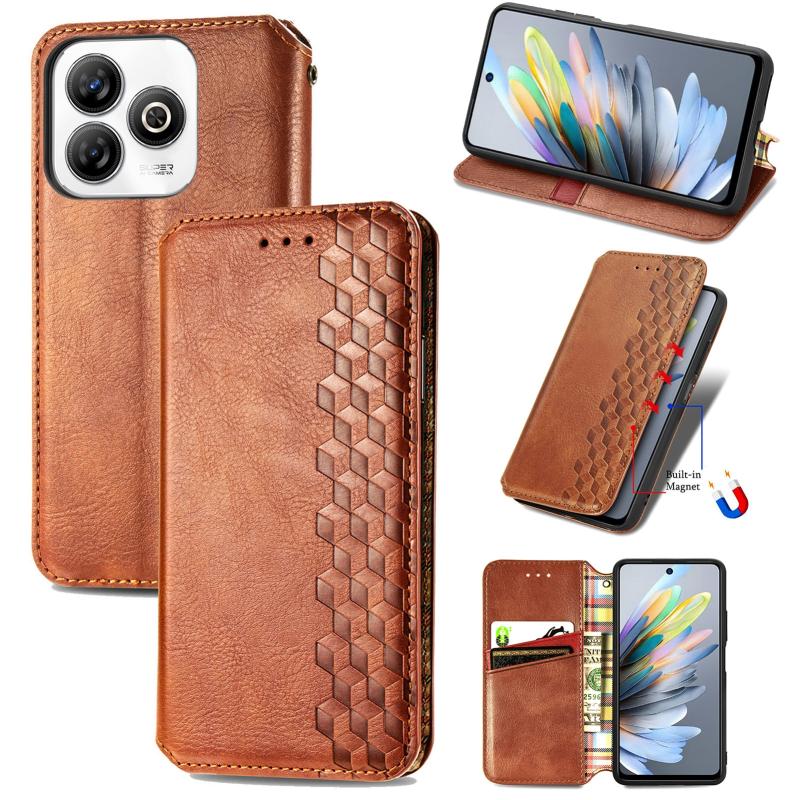 For ZTE Blade A75 4G Cubic Grid Pressed Magnetic Leather Phone Case(Brown)
