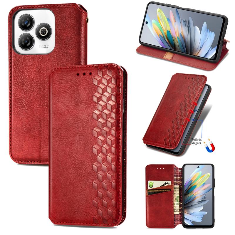 For ZTE Blade A75 4G Cubic Grid Pressed Magnetic Leather Phone Case(Red)