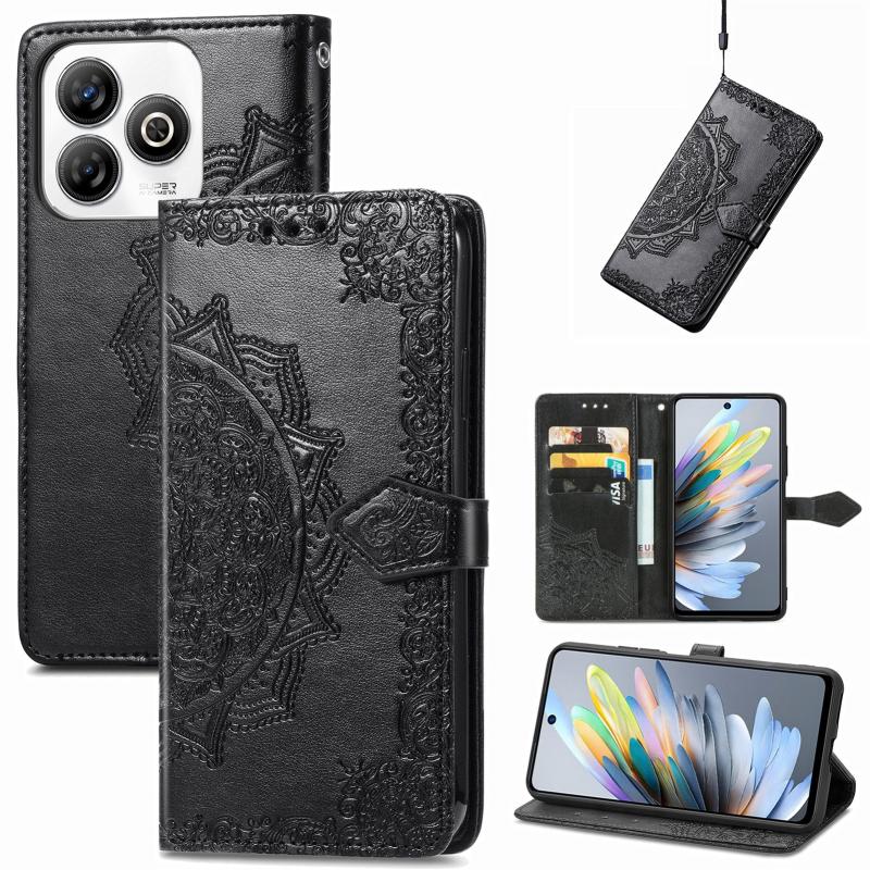 For ZTE Blade A75 4G Mandala Flower Embossed Leather Phone Case(Black)