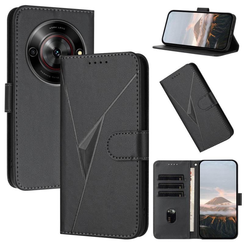 For ZTE Blade A75 5G / Nubia Focus Triangle Pattern Buckle Clasp Leather Phone Case(Black)