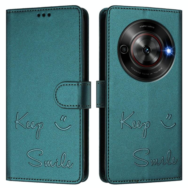 For ZTE Blade A75 5G Smile Embossing RFID Leather Phone Case(Peacock Green)