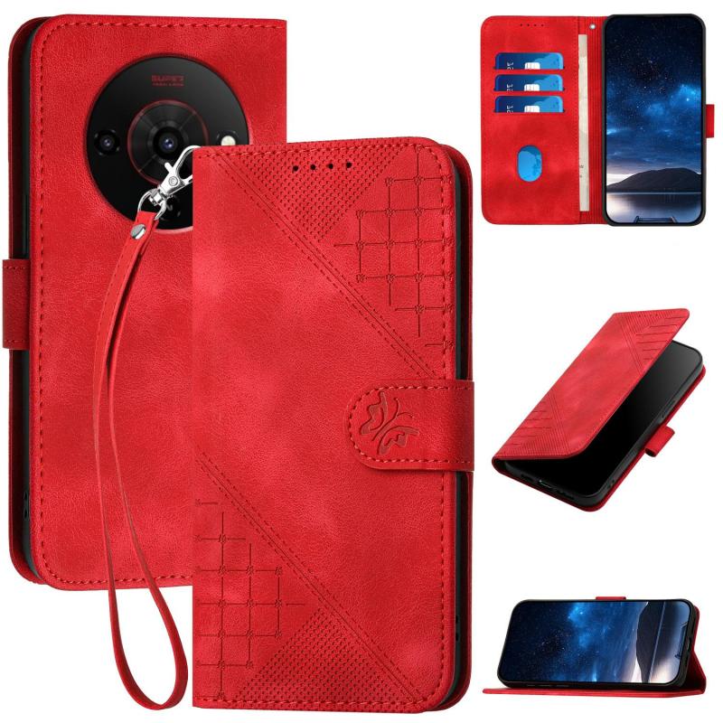For ZTE Blade A76 5G Grid Butterfly Embossed Pattern Leather Phone Case with Lanyard(Red)