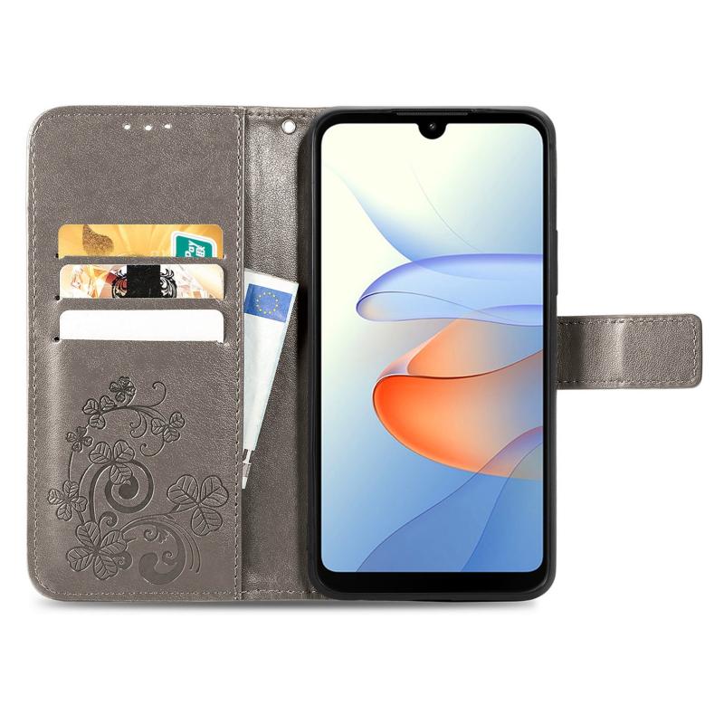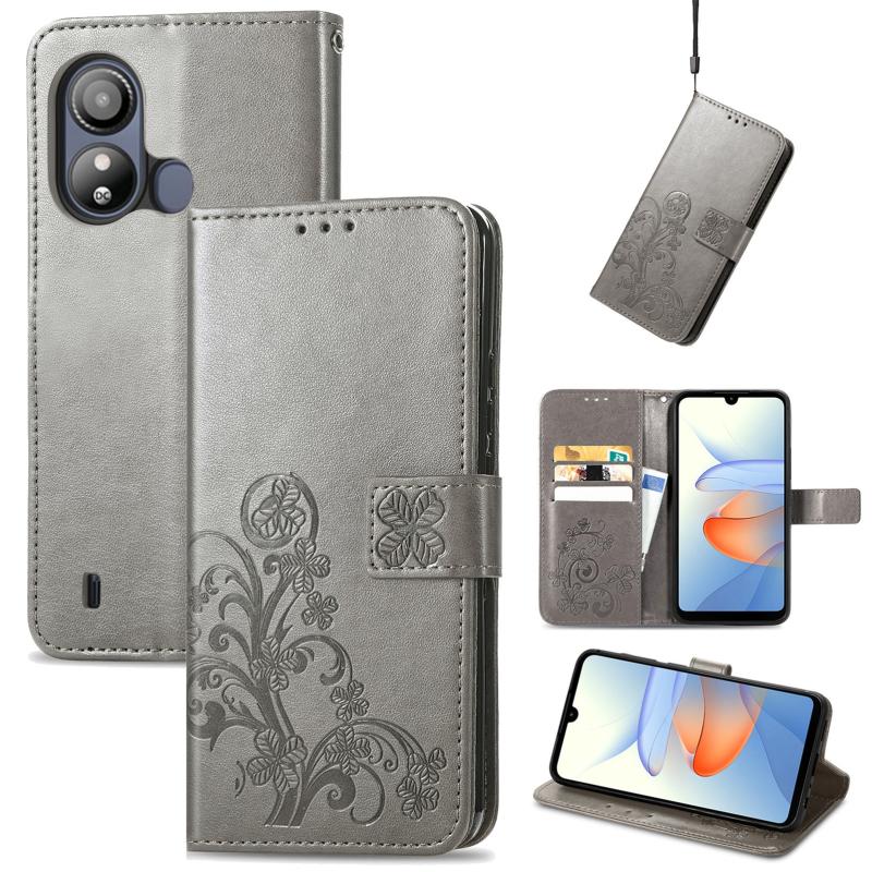 For ZTE Blade L220 Four-leaf Clasp Embossed Leather Phone Case(Rrey)