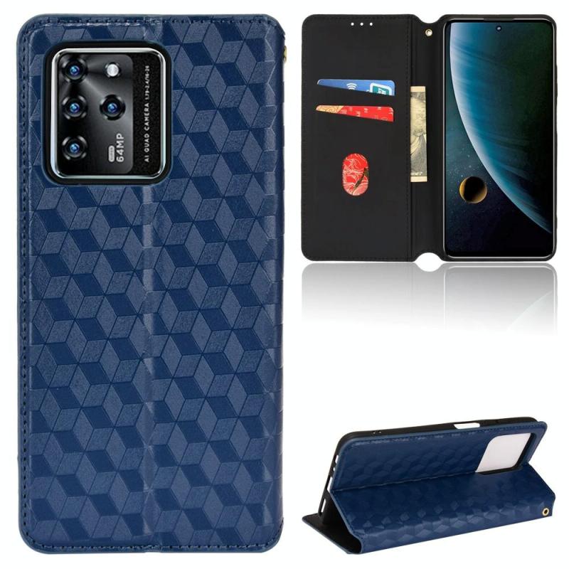 For ZTE Blade V30 Cubic Grid Texture Flip Leather Phone Case(Blue)