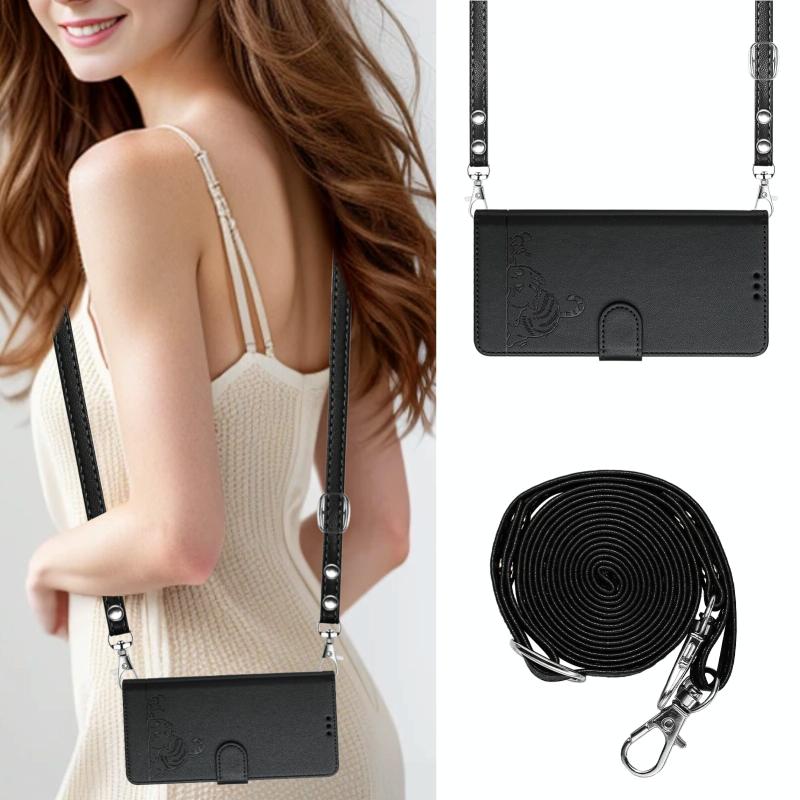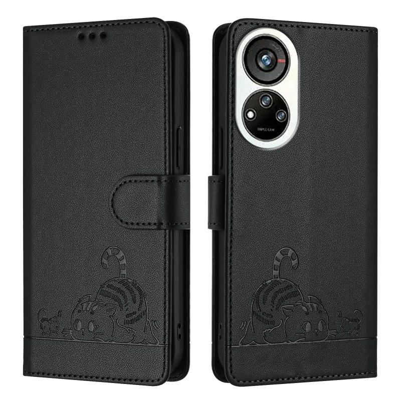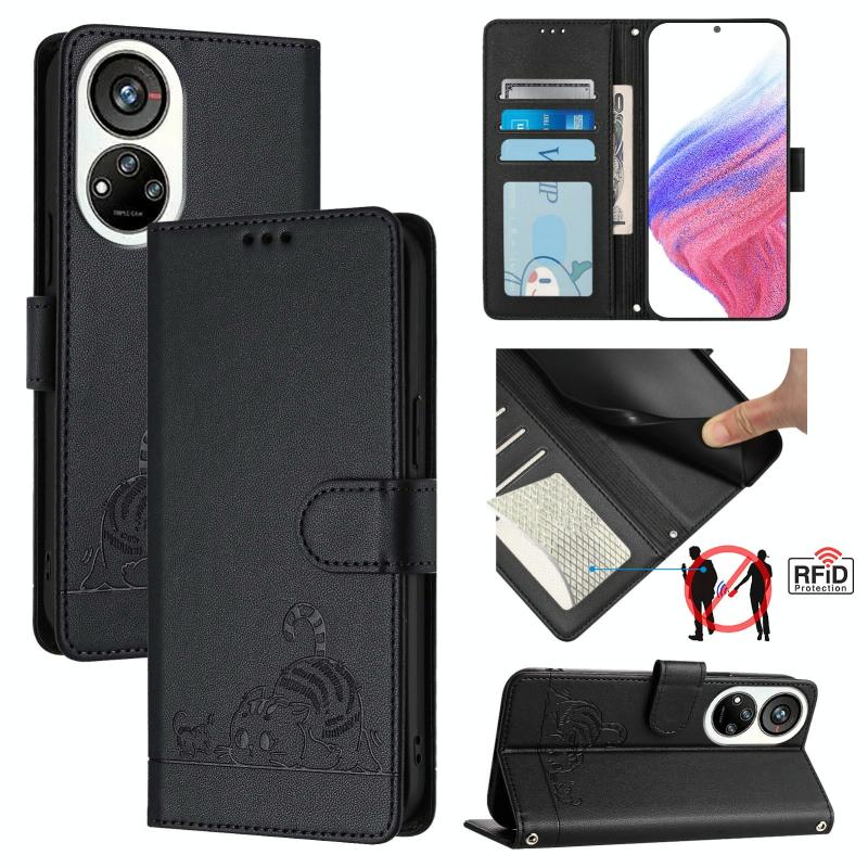 For ZTE Blade V40s Cat Rat Embossed Pattern RFID Leather Phone Case with Lanyard(Black)