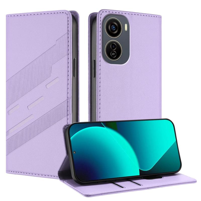 For ZTE Blade V50 Design 5G Embossed Multi-functional Wallet Retro Leather Phone Case(Light Purple)