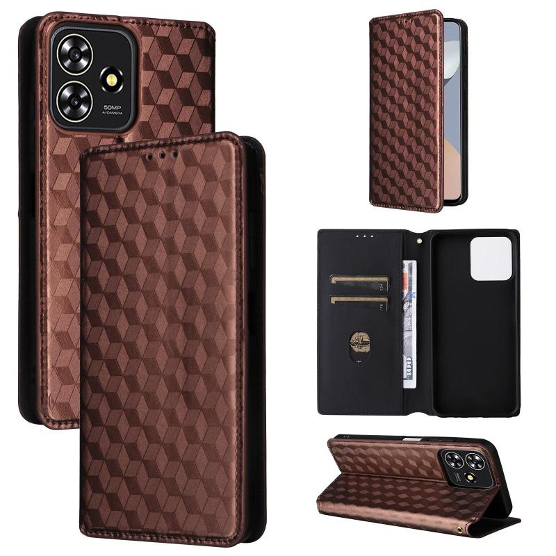 For ZTE Blade V50 Smart / Axon 50 Lite Cubic Grid Texture Flip Leather Phone Case(Brown)
