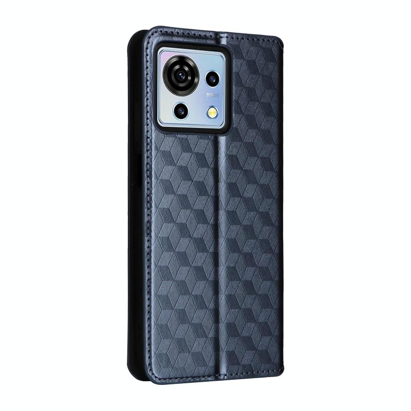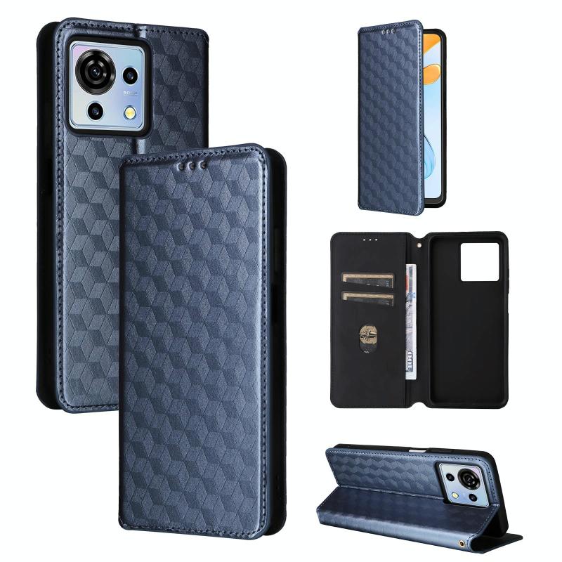 For ZTE Blade V50 Vita Cubic Grid Texture Flip Leather Phone Case(Blue)