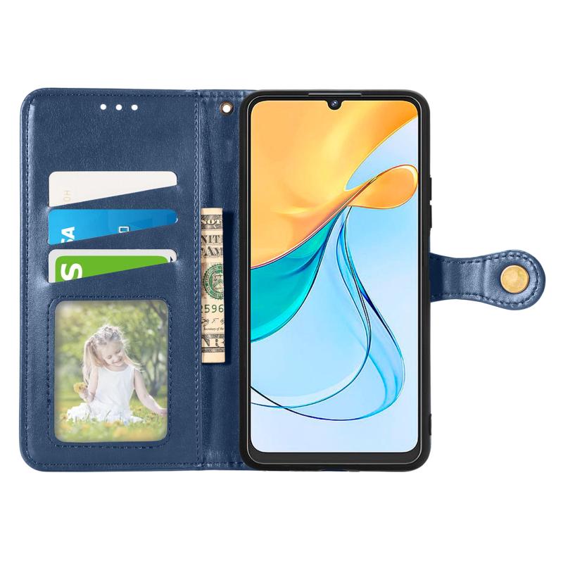 For ZTE Blade V50 Vita Retro Solid Color Buckle Leather Phone Case(Blue)