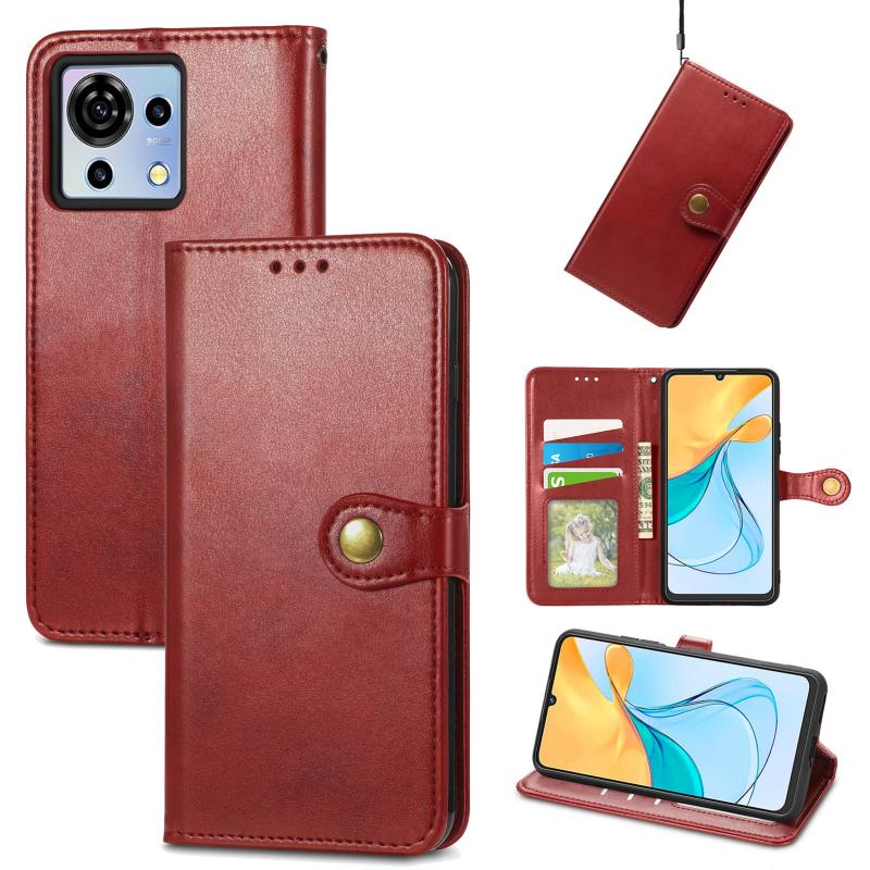 For ZTE Blade V50 Vita Retro Solid Color Buckle Leather Phone Case(Red)