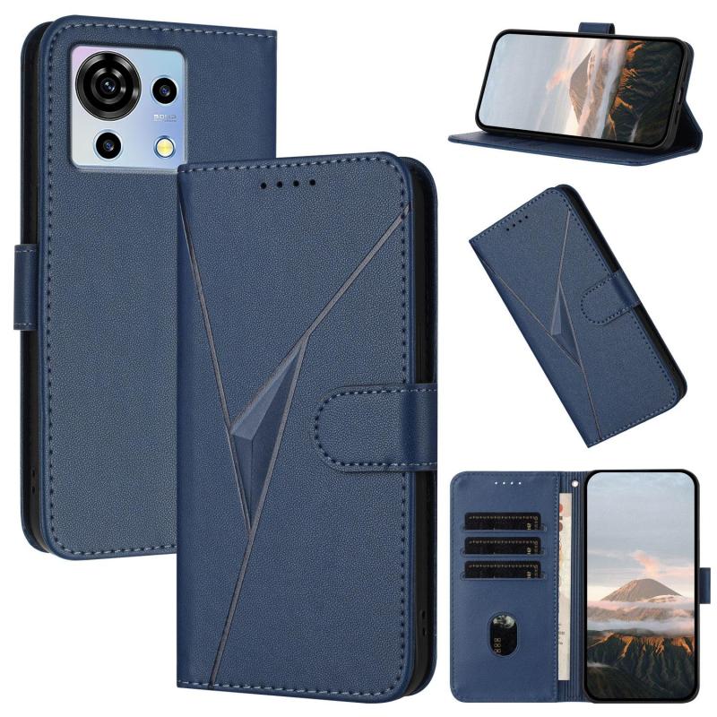 For ZTE Blade V50 Vita Triangle Pattern Buckle Clasp Leather Phone Case(Royal Blue)