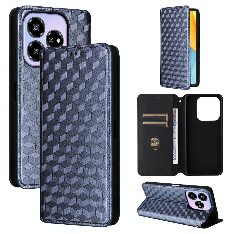For ZTE Blade V60 Design Cubic Grid Texture Flip Leather Phone Case(Blue)