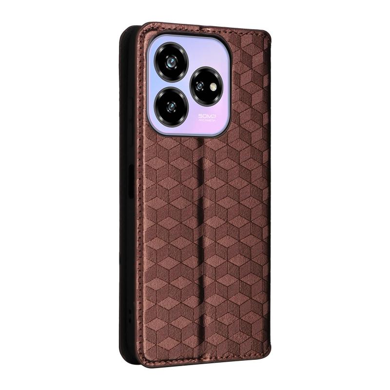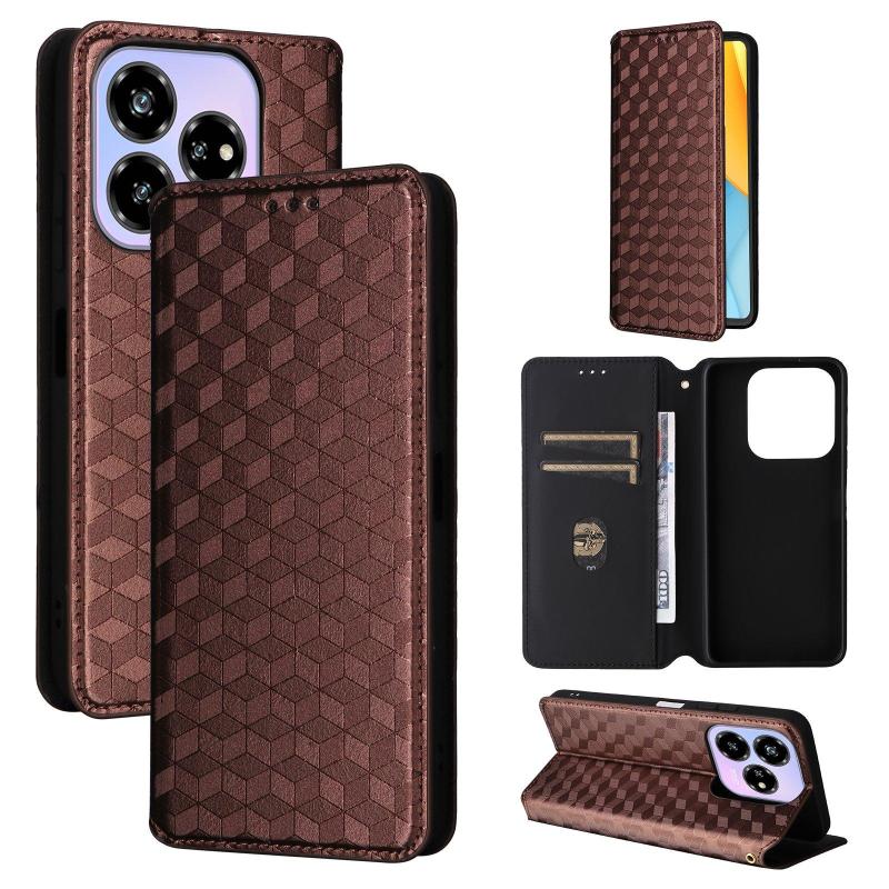 For ZTE Blade V60 Design Cubic Grid Texture Flip Leather Phone Case(Brown)