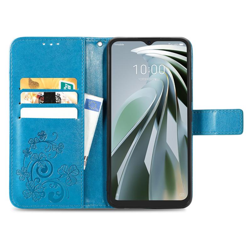 For ZTE Libero 5G IV Four-leaf Clasp Embossed Leather Phone Case(Blue)