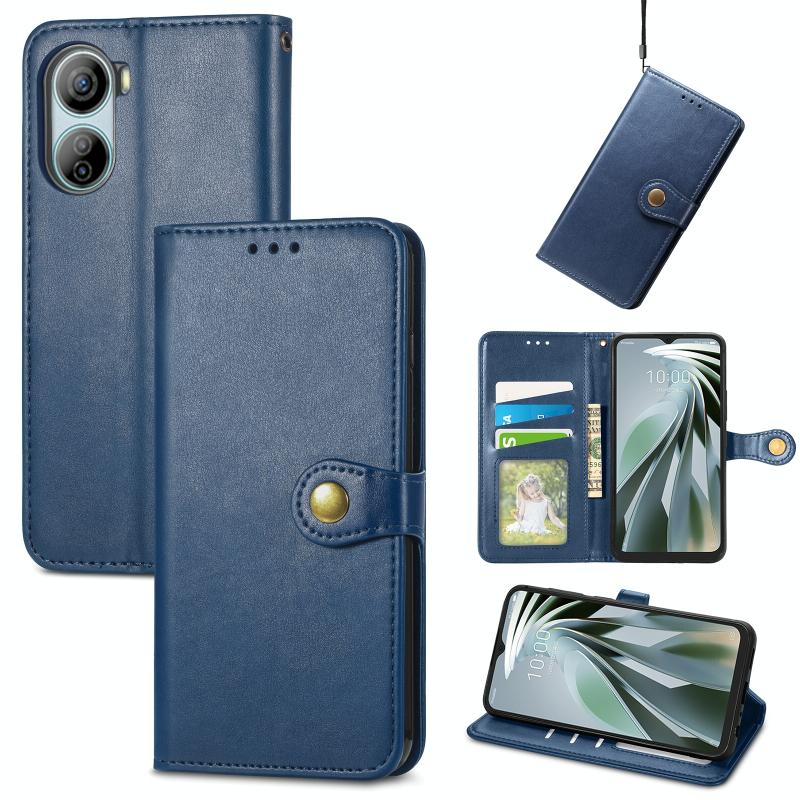 For ZTE Libero 5G IV Retro Solid Color Buckle Leather Phone Case(Blue)