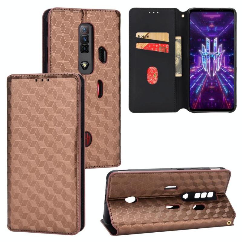 For ZTE nubia RedMagic 7 Cubic Grid Texture Flip Leather Phone Case(Brown)