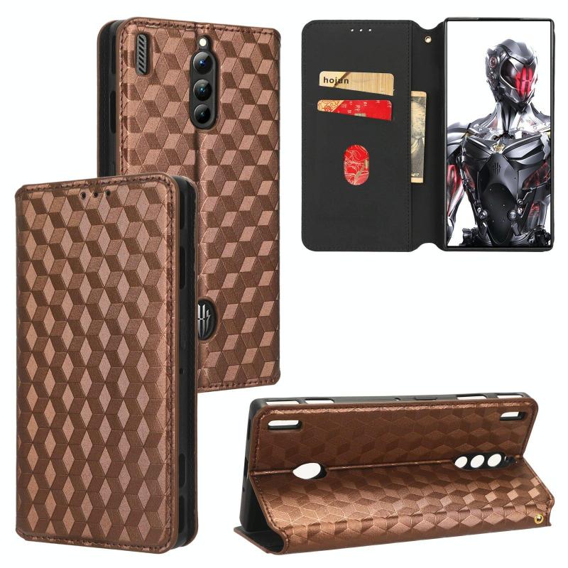 For ZTE nubia RedMagic 8 Pro 5G / 8 Pro+ Cubic Grid Texture Flip Leather Phone Case(Brown)
