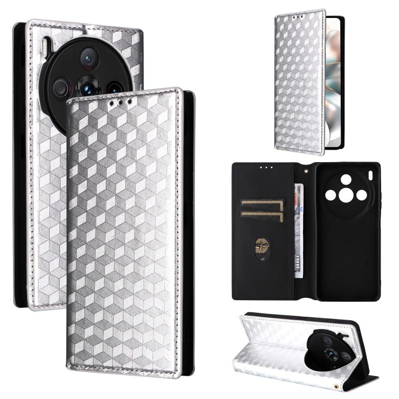 For ZTE nubia Z60S Pro Cubic Grid Texture Flip Leather Phone Case(Silver)