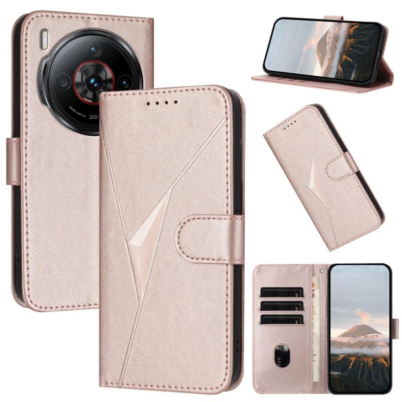 For ZTE nubia Z60S Pro Triangle Pattern Buckle Clasp Leather Phone Case(Rose Gold)