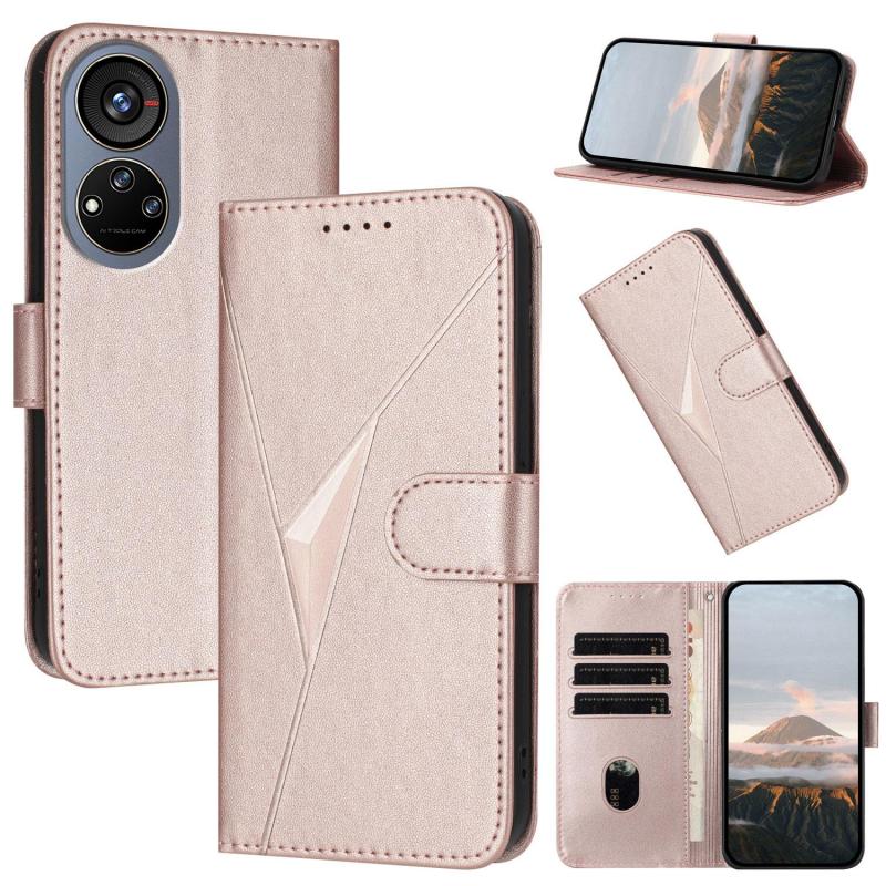For ZTE Voyage 40 Triangle Pattern Buckle Clasp Leather Phone Case(Rose Gold)