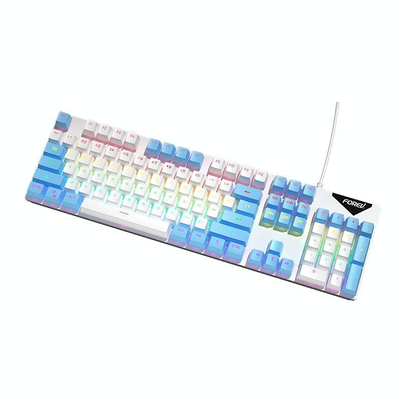 FOREV FVQ302 Mixed Color Wired Mechanical Gaming Illuminated Keyboard(White Blue)
