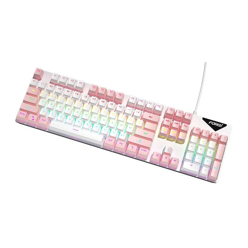 FOREV FVQ302 Mixed Color Wired Mechanical Gaming Illuminated Keyboard(White Pink)