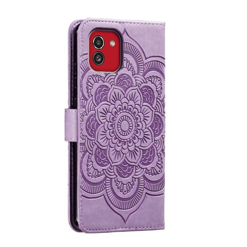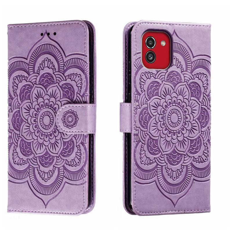 ForSamsung Galaxy A03 Sun Mandala Embossing Pattern Phone Leather Case(Purple)