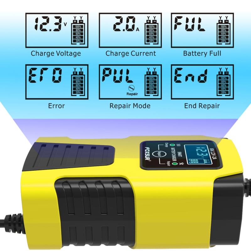 FOXSUR 2A / 6V / 12V Car / Motorcycle 3-stage Full Smart Battery Charger, Plug Type:EU Plug(Yellow) (FOXSUR)