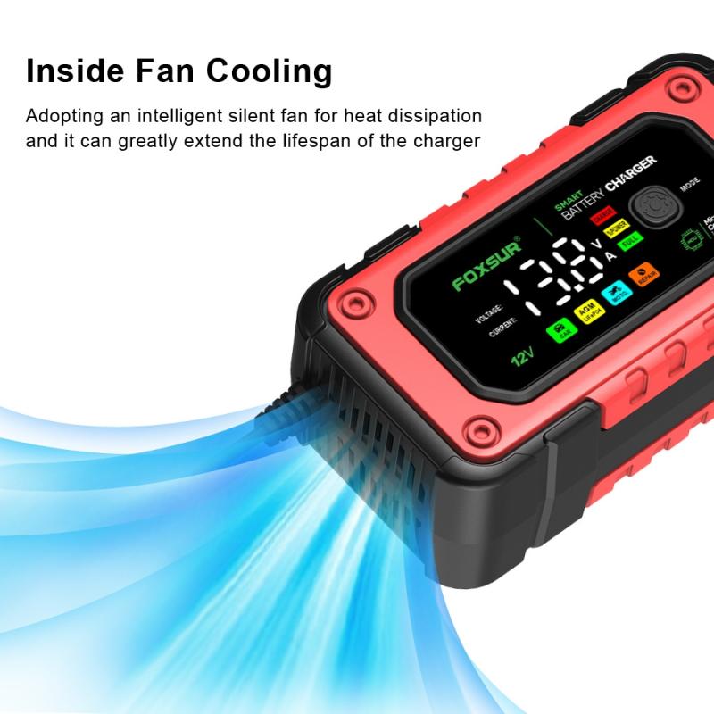 FOXSUR 7A 12V Car / Motorcycle Smart Battery Charger, Plug Type:EU Plug(Red) (FOXSUR)